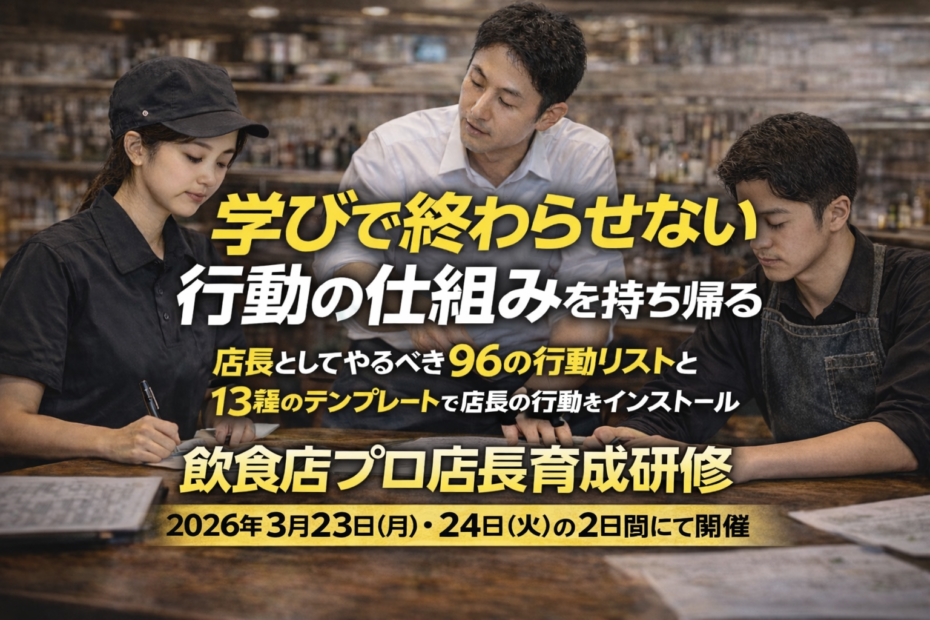 2026.3/23,24開催|飲食店プロ店長育成研修 |成果を生む「行動の仕組み」を2日間でインストール!