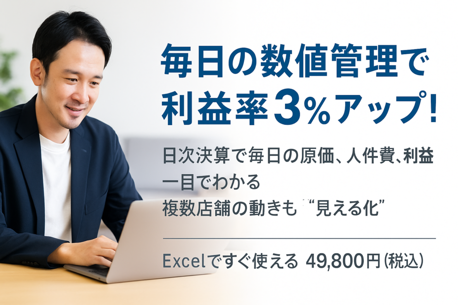 毎日の売上・数値管理で利益率3%アップ|飲食コンサルがつくった「売上管理ソフト」販売中!