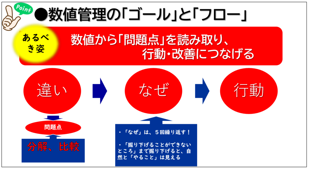 秘訣5:数値管理のフロー「違い→なぜ→行動」を社内に定着させる