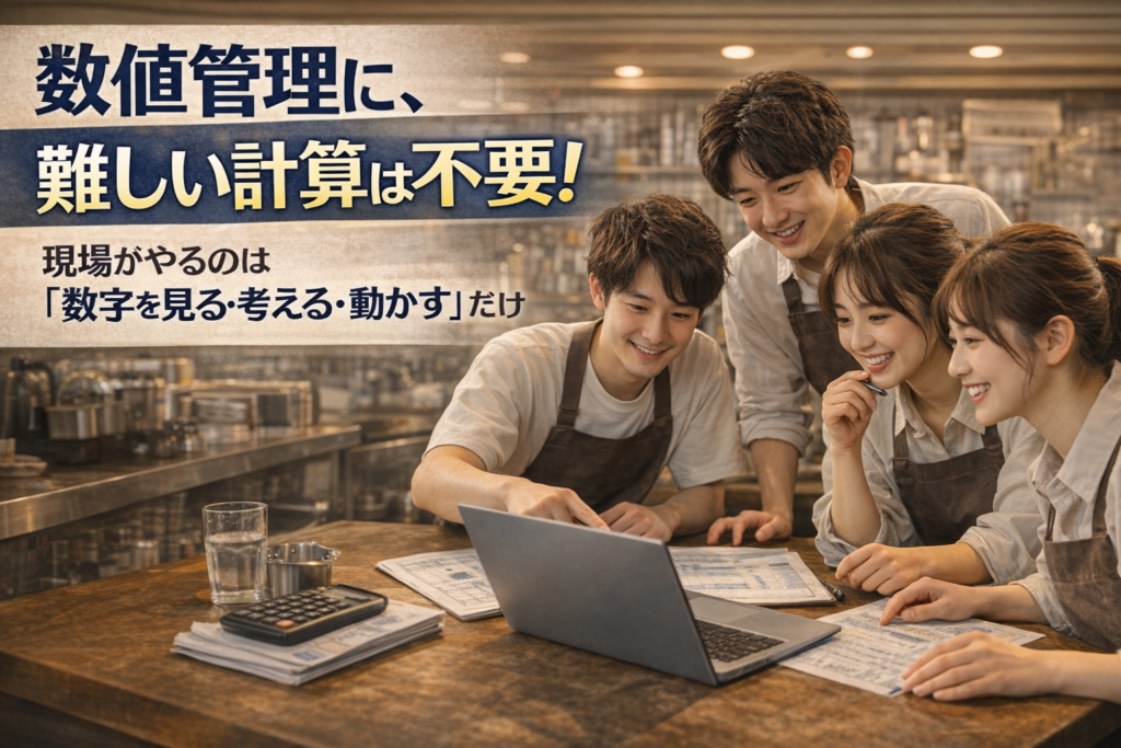 本業である調理や接客には長けていても、「原価率」「人時売上高」と聞いただけで思考停止してしまうスタッフは少なくありません。そして、計算が難しいと思われがちな計数管理は、いつしか経営者であるあなたの”一人だけの仕事”になってしまっていませんか?