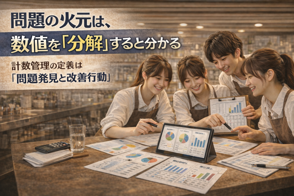 数値を分解することで、様々な角度でお店を分析することができ、問題は発見されやすくなります。そうして分解された数値を「どう見るか」を現場スタッフに共有することが、次にとても重要になります。